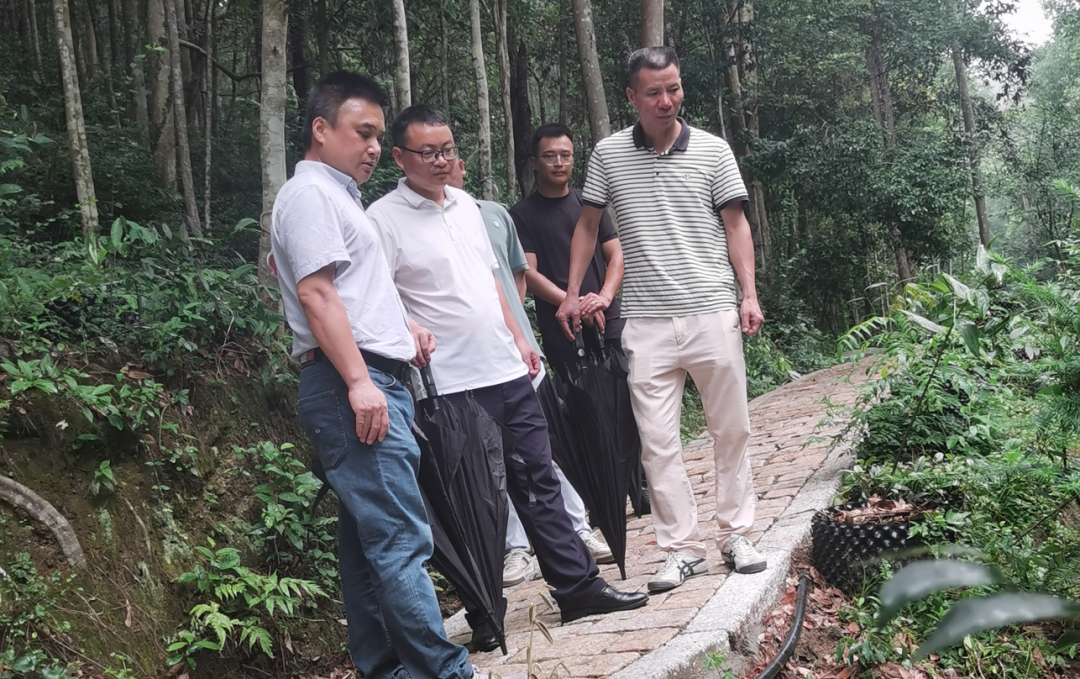 8月19日,集團總經理練必欽同志一行驅車來到邵武市二都國有林場,實地考察南平市國家儲備林質量精準提升工程項目,開展調研工作。邵武市廣森營林投資有限責任公司經理林輝、邵武市二都國有林場場長劉紅躍、南平儲備林建設發展有限公司總經理趙福宏等陪同調研。 邵武市廣森營林投資有限責任公司作為南平市國家儲備林質量精準提升工程項目邵武市域內項目建設單位,其經理林輝同志首先介紹了幾年來邵武市在項目建設中所取得的成效。練必欽總經理詳細詢問了項目建設進度、亮點、堵點、難點以及項目投資、運營計劃,又冒雨實地考察了邵武市二都國有林場林下經濟建設情況,聽取了邵武市二都國有林場場長劉紅躍關于邵武市二都國有林場利用林下空間發展中草藥產業經驗介紹。