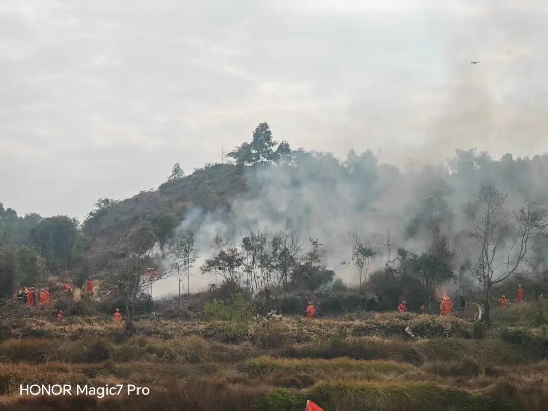 演練以模擬真實火災情景為核心,通過“火場偵察——前期處置——高強度地表火撲打——上山火處置與緊急避險——樹冠火處置——火場清理”六大連貫場景,完整還原火災從初發到撲滅的全鏈條過程?,F場隊員靈活運用油鋸、劈山機、風力滅火機、滅火彈等裝備,并借助無人機勘察火情,高效開展撲火行動。整個過程中,各小組動作規范、銜接緊密,既展現了對專業裝備的熟練運用能力,也凸顯了跨單位協同作戰的默契,真正將“實戰化”要求落到了每一個環節。